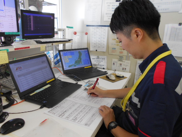 現在は航務業務とランプ業務を担当しています。航務では大きく分けて2つの業務があり、地上作業が滞りなくおこなわれているかを管理するステーションコントロール業務。ウェイト&バランスの管理や航空機へ気象情報、揺れの情報を伝える運航管理補助業務があります。ランプではお客様の手荷物を航空機へ搭降載する業務や、航空機を誘導するマーシャリングなどをおこなっています。どの業務も安全運航に直結する重要な業務です。